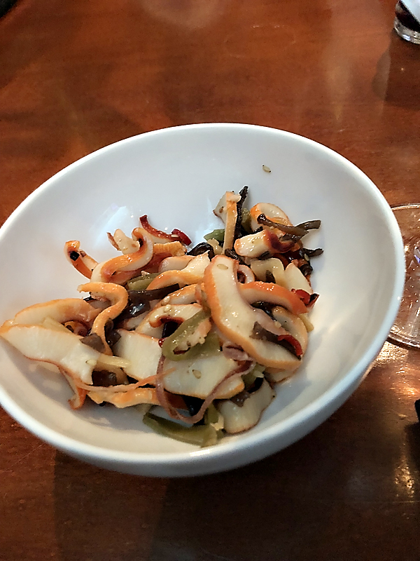 It was packed because Sushi Katana is located at the Mall at Millenia, and we were arriving in Orlando on Friday at 6:30. We took the couch area towards the back of the restaurant. It was my first time sitting back there, and I loved it; it was cozy and intimate. I started with a glass of their White Peach Saki. It was sooo good y’all! Cool, refreshing, and light, it was smooth and went down easy. It paired perfectly with our squid salad, which was delicious.